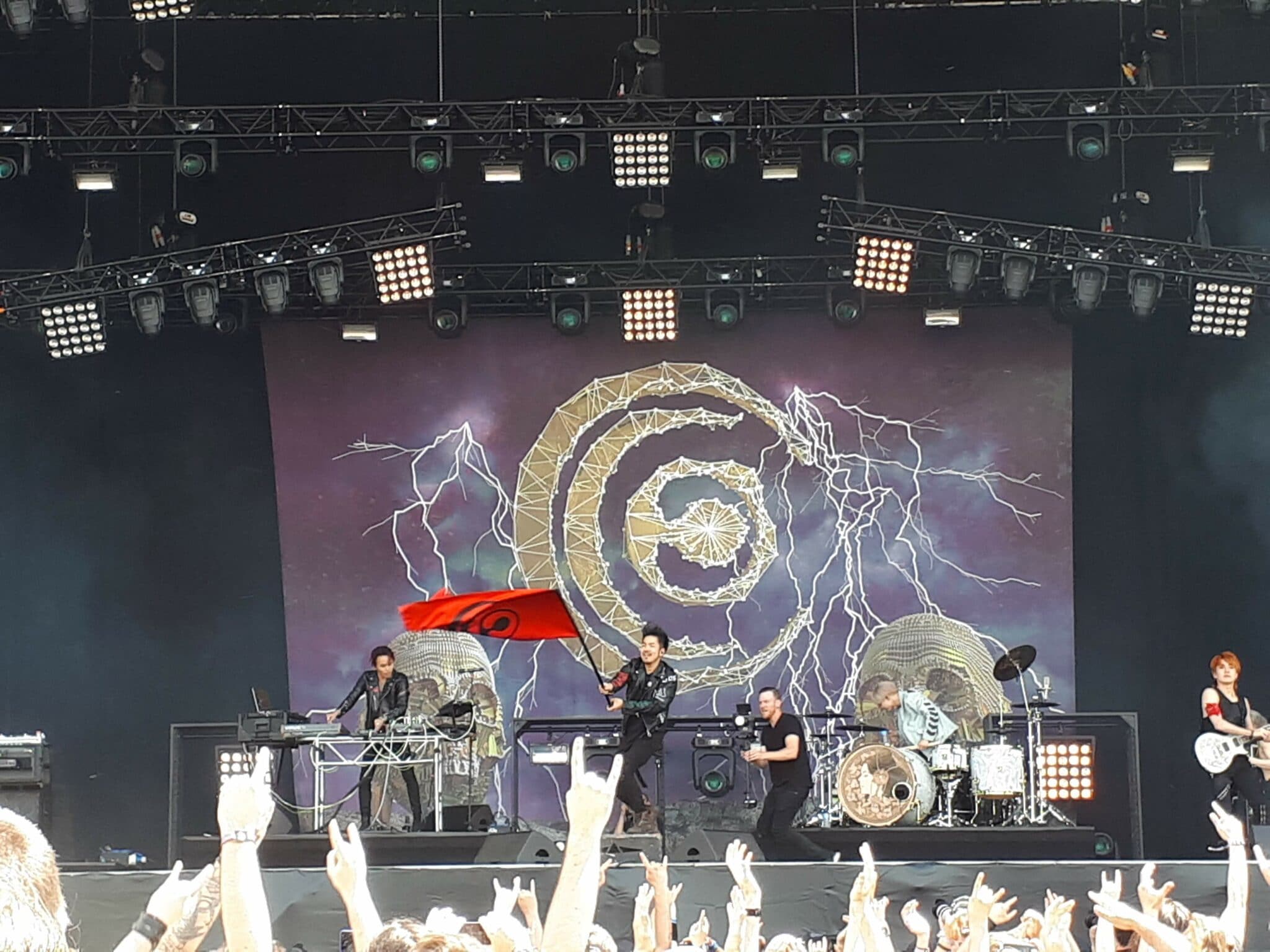 Marilyn Manson c’est de l’auto-tune à mort sur les albums, le tout étant bien travaillé et assumé. Mais en live, lorsque la voix qui est devrait faire 90% du job n’est pas présente, c’est un carnage. La scène pourtant très riche en décor ne semble finalement pas tant utilisée que cela…