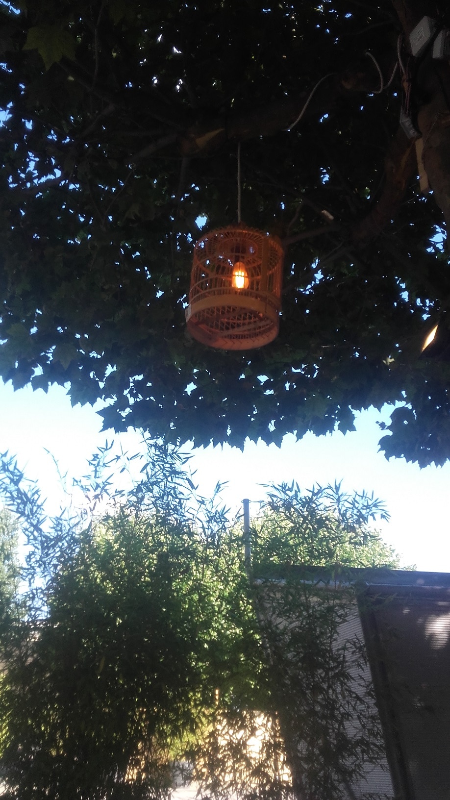 Une terrasse ombragée aux fauteuils cosy et des petites tables basses en bois marquent l’entrée des lieux et laissent place au bar, espace central des lieux et sas de transition vers la partie « Restaurant », 2éme partie de ce lieu donc, où l’ambiance Guinguette prédomine avec notamment de belles cages jaunes qui pendent aux arbres (« wunderbar » comme disent nos amis d’outre-Rhin !).