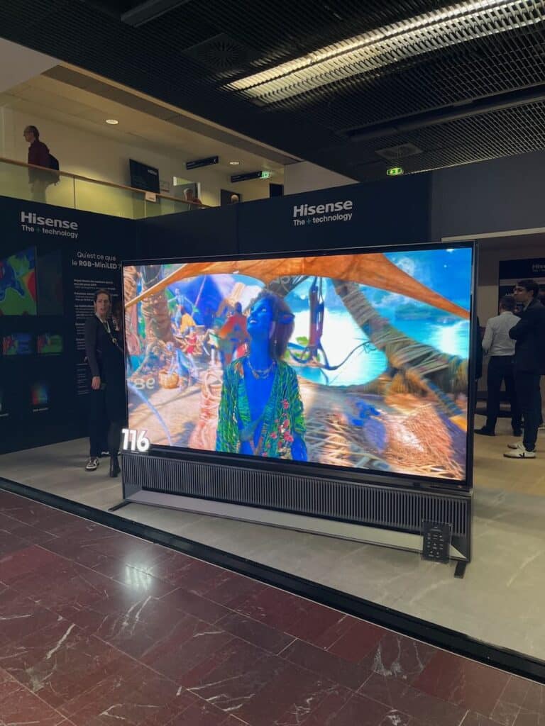 Une fois n’est pas coutume, on peut parler de TV par ici ! Et oui, les projecteurs n’ont pas l’exclusivité du salon du passionné de home-cinéma. Difficile de passer à côté du 116UX : le premier MiniLED RGB et la plus grande TV du monde selon la marque. Sa dalle UHD 4K (116 pouces !) et sa technologie RGB-MiniLED affiche une couverture colorimétrique de 95% du BT.2020, pour une image flashy, ultra précise et respectueuse des intentions d’origine.