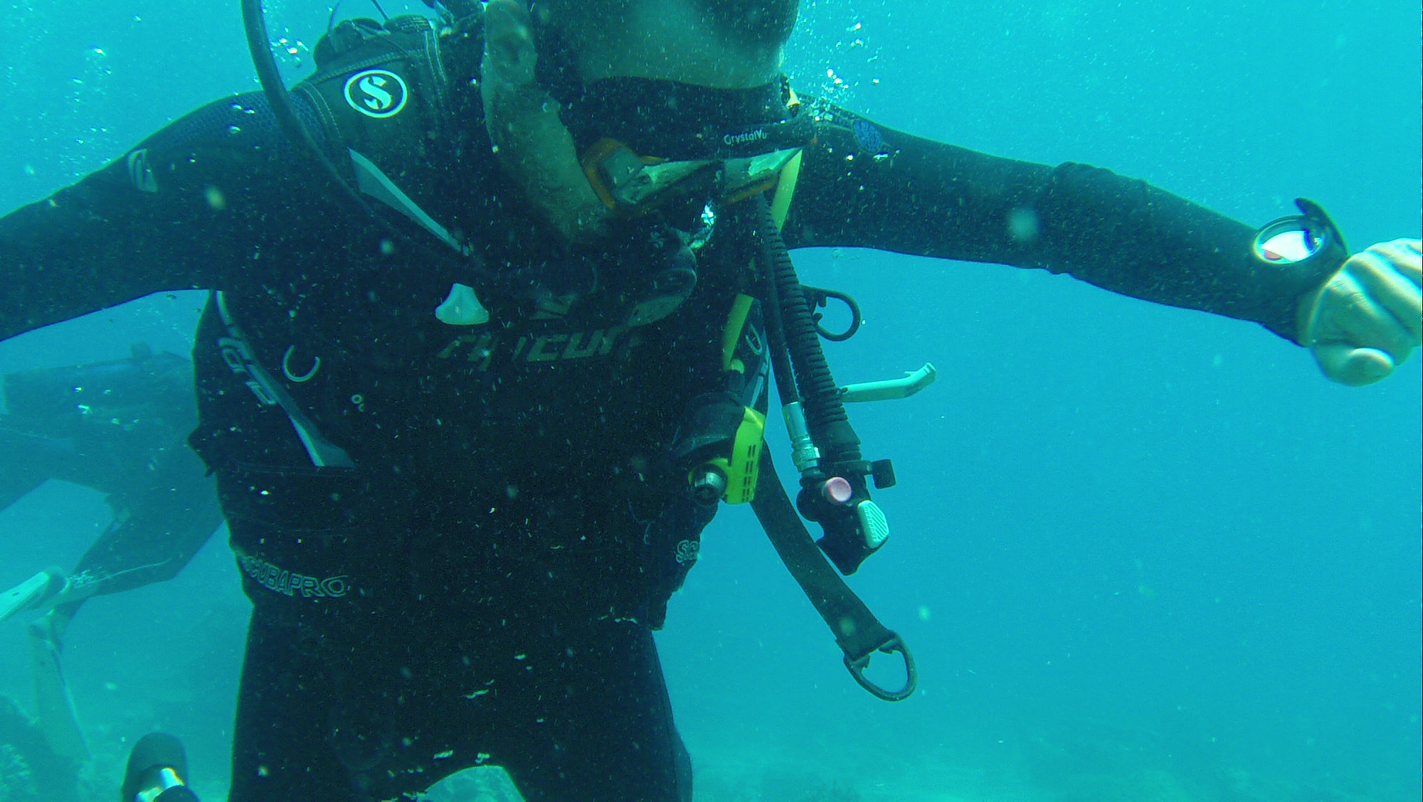 Du fait de la profondeur et des plongées successives, l’excursion est plus courte que pour les autres sorties sous-marines : 34 minutes. Ce qui est relativement confortable pour bien profiter et se balader dans les bancs de poissons et autour de l’épave.