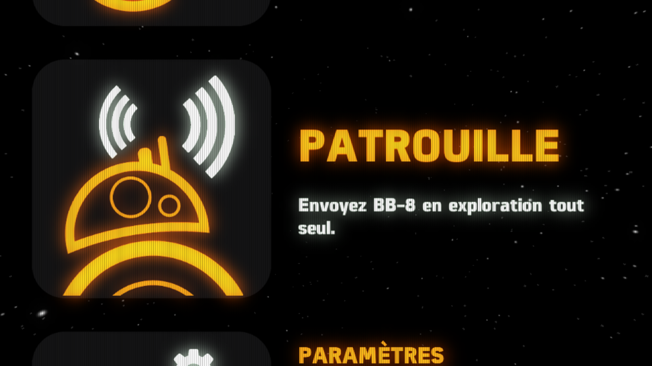 Connecté en bluetooth, il suffira d’approcher votre téléphone (Android comme iOS) équipé de l’application idoine pour activer votre BB-8. Une fois cela fait, un rapide tutoriel vous présentera comment piloter l’animal. Le droïde réponds d’ailleurs au doigt et à la voix sans soucis, sous réserve de parler anglais.