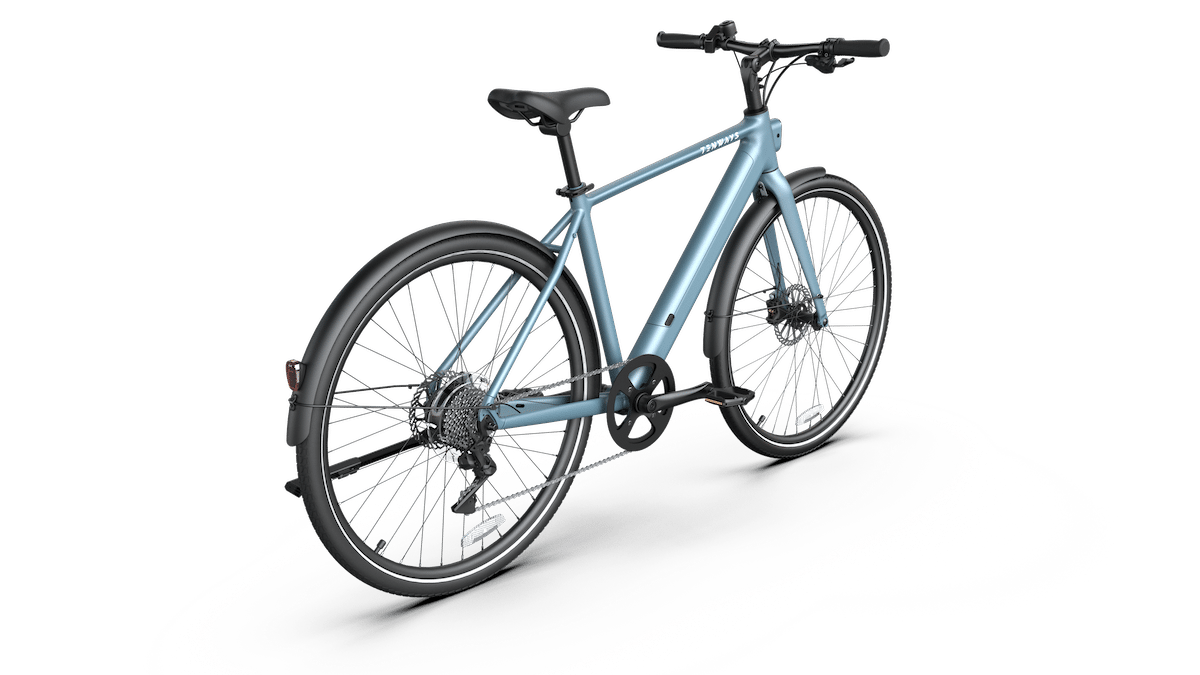 Le CGO600 Plus adopte un design inspiré des vélos hollandais, avec une géométrie épurée et des lignes fluides. Les câbles sont soigneusement dissimulés dans le cadre pour un look propre et moderne. Disponible en deux couleurs classiques, Sky Blue et Pebble Grey, ce vélo s’intègre parfaitement dans un environnement urbain.