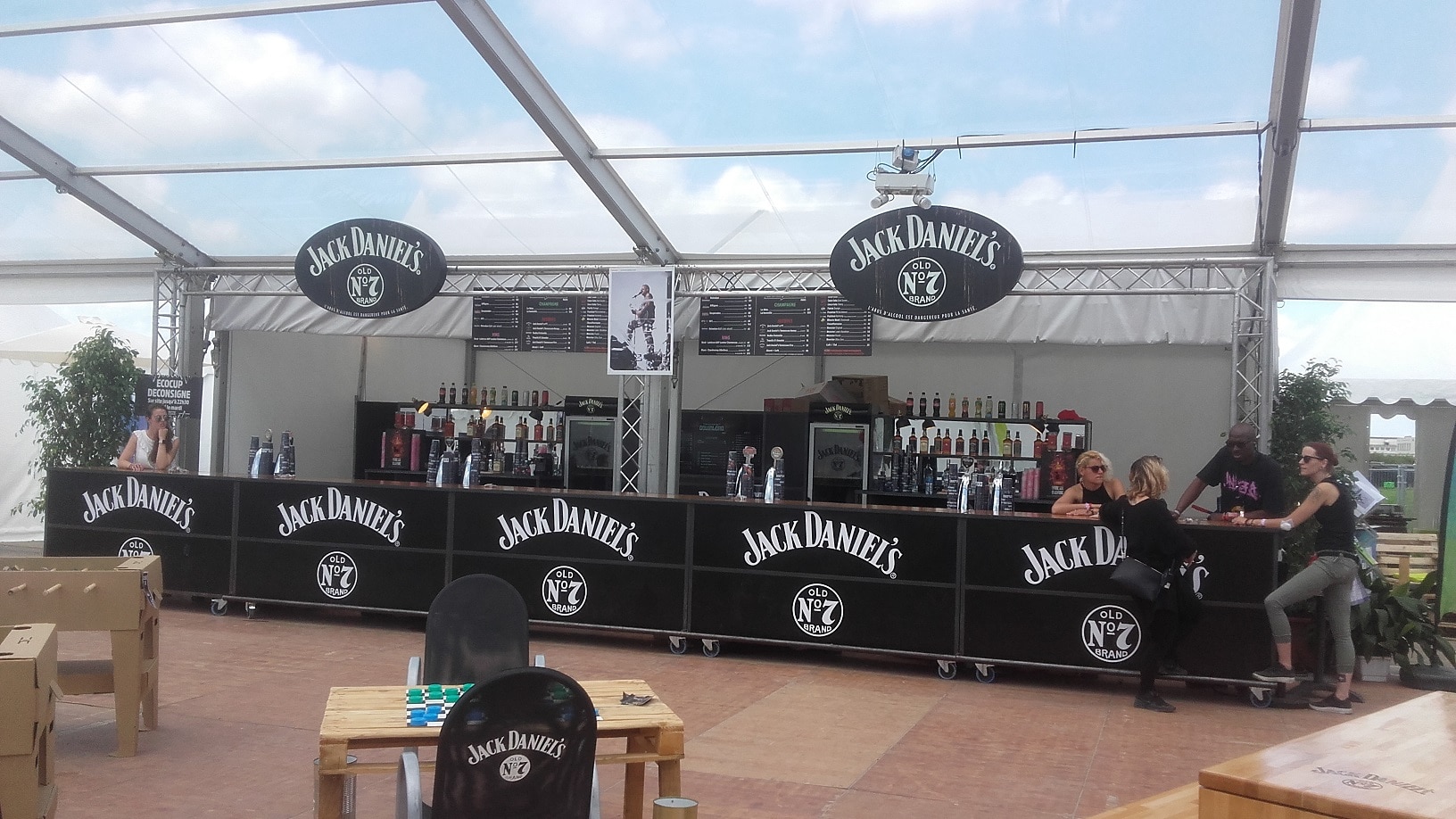 Mais l’impression fut agréable : l’équipe d’accueil est très sympa, l’endroit est lumineux et contient largement assez de places pour s’asseoir et se reposer (sous le « chapiteau » ou sous les parasols en terrasse). C’est même un endroit où on peut jouer : tables en damier, baby foot. Le bar est spacieux et les barmaid très cool.