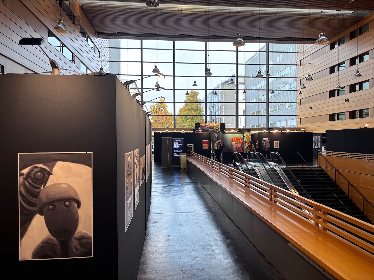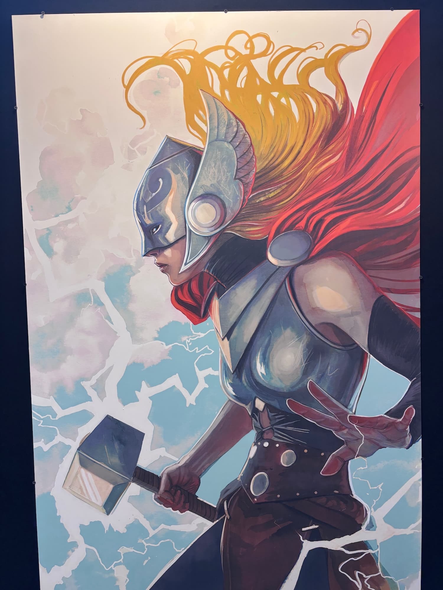 Quelques pas plus loin, on tombe sur la fameuse librairie des Utopiales. Plus grande bibliothèque de science-fiction d’Europe, on y retrouve absolument tout ! Des classiques intemporels aux dernières nouveautés, en passant par les différentes œuvres des intervenants présents au festival, c’est un immanquable pour tous les fans de littérature en tout genre. On peut y trouver par exemple les comics Marvel et DC Comics sur lesquels a travaillé Stéphanie Hans, illustratrice de renom. Une exposition lui est d’ailleurs dédiée cette année : elle retrace toute l’histoire de son travail, avec des planches de croquis, des couvertures, et même certains objets chers à son cœur, qui ont été source d’inspiration ou aide précieuse dans son travail. Une exposition très réussie qui donne envie de s’intéresser au travail de Stéphanie Hans.