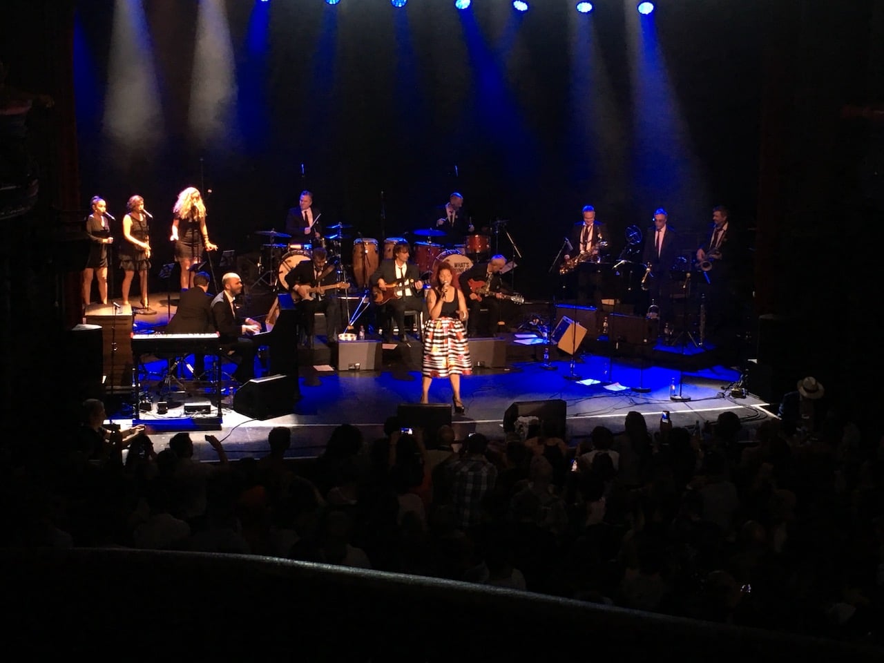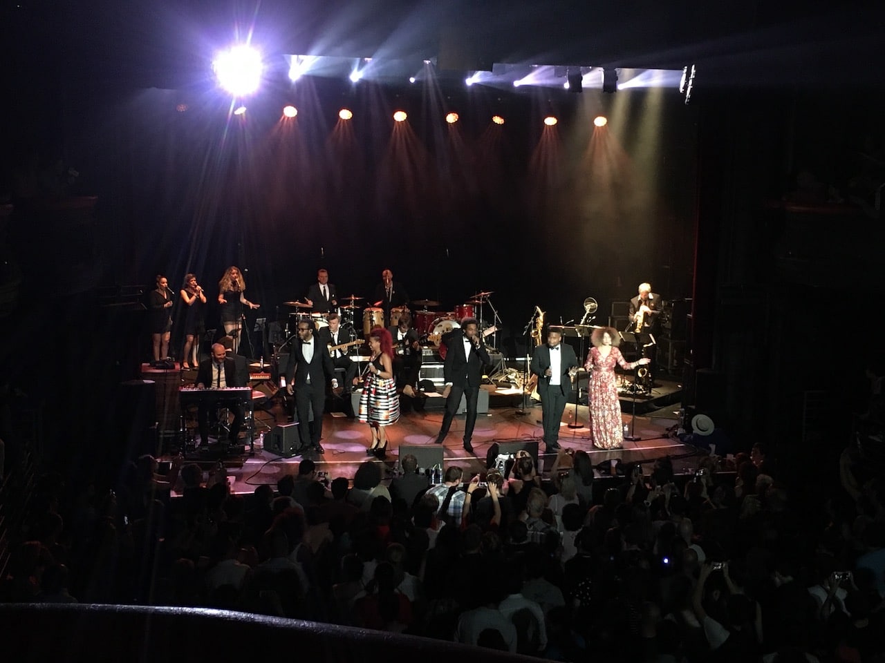 L’ambiance débutant calmement s’est donc très vite réchauffée aux rythmes de ces chansons mythiques et de la passion dont témoignait l’orchestre autour de ces dernières, tous semblant réellement investis dans cette musique et ce show. Entre deux chansons, les chanteurs nous partageaient un bout de l’histoire de la Motown, cette maison de disque désormais mythique créé par Berry Gordy en 1959 à Detroit. Motown qui avait pour but de séduire à la fois un public noir et le grand public blanc autour de ces hymnes de R’n’B (à l’époque où l’on l’appelait encore Rythm and Blues) et de Soul. Un voyage temporel et musical, mais aussi culturel et festif et l’on pouvait voir le public (même du balcon) se déhancher aux rythme d’un Respect d’Aretha Franklin ou de I’m a Soulman de James Brown joué en rappel.
